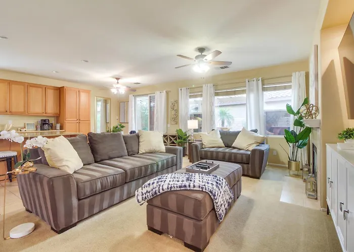 Pendant votre séjour à 1 Mi To Empire Polo Club Spacious Indio Home!, vous pourrez profiter d'un jacuzzi et d'un bain chaud ou visiter le Rancho Las Flores Park and Event Venue à environ 25 minutes de marche. Villa est située à à 4 km du Casino Spotlight 29 et offre à ses hôtes la possibilité de profiter d'une baignoire chaude et d'une piscine extérieure.